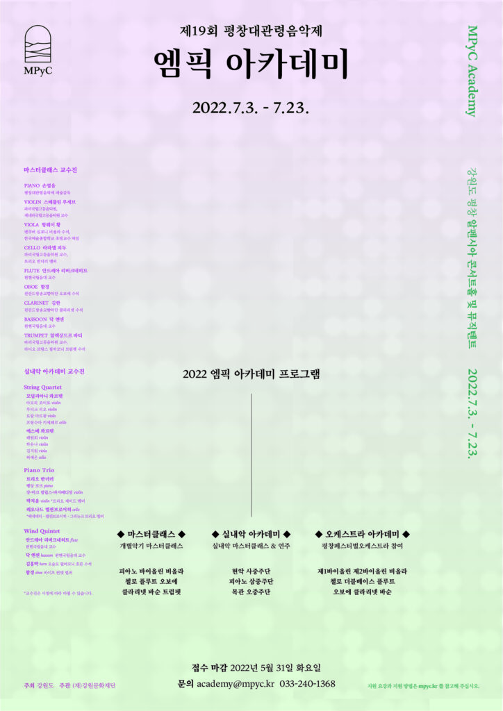 [평창대관령음악제] 제19회 평창대관령음악제 <2022 엠픽아카데미> 시즌 교육 프로그램 ‘마스터클래스’, ‘실내악 아카데미’, ‘오케스트라 아카데미’ 진행!
