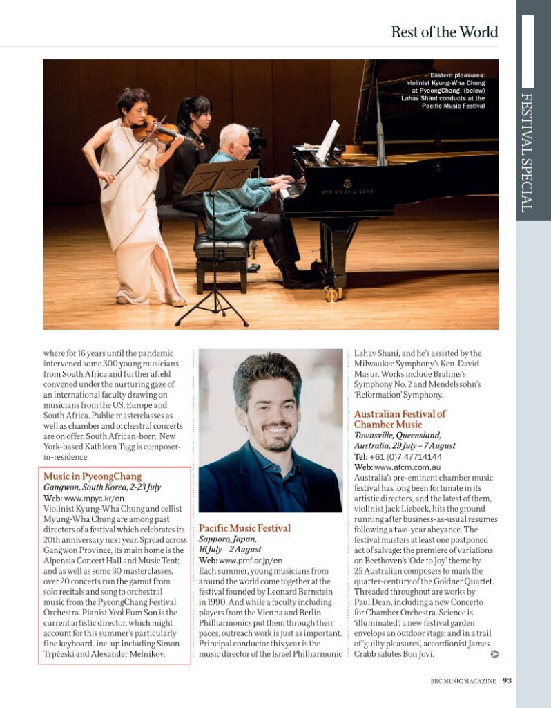 News Media report [BBC] 제19회 평창대관령음악제 5월호 Date : 2022.07.19 View : 501 제19회 평창대관령음악제_BBC 5월호 광고 Prev [제19회 평창대관령음악제] 성황리에 진행 중 관객들 연일 ‘호평 일색’ Next [동아일보] 최장기간-새 악단… 마스크 벗은 평창대관령음악제 List