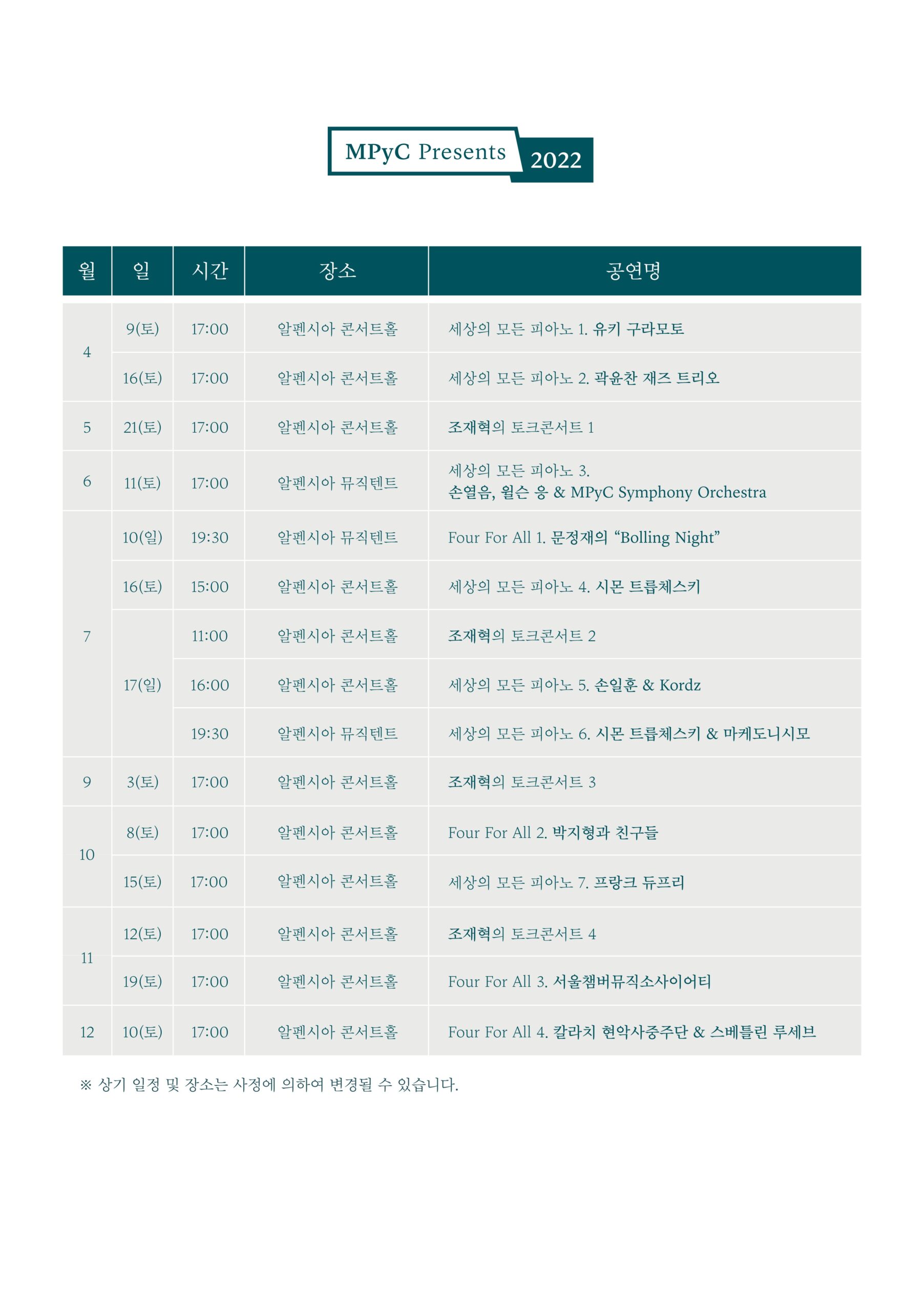 붙임 3. [MPyC Presents 2022] 전체 공연 일정표