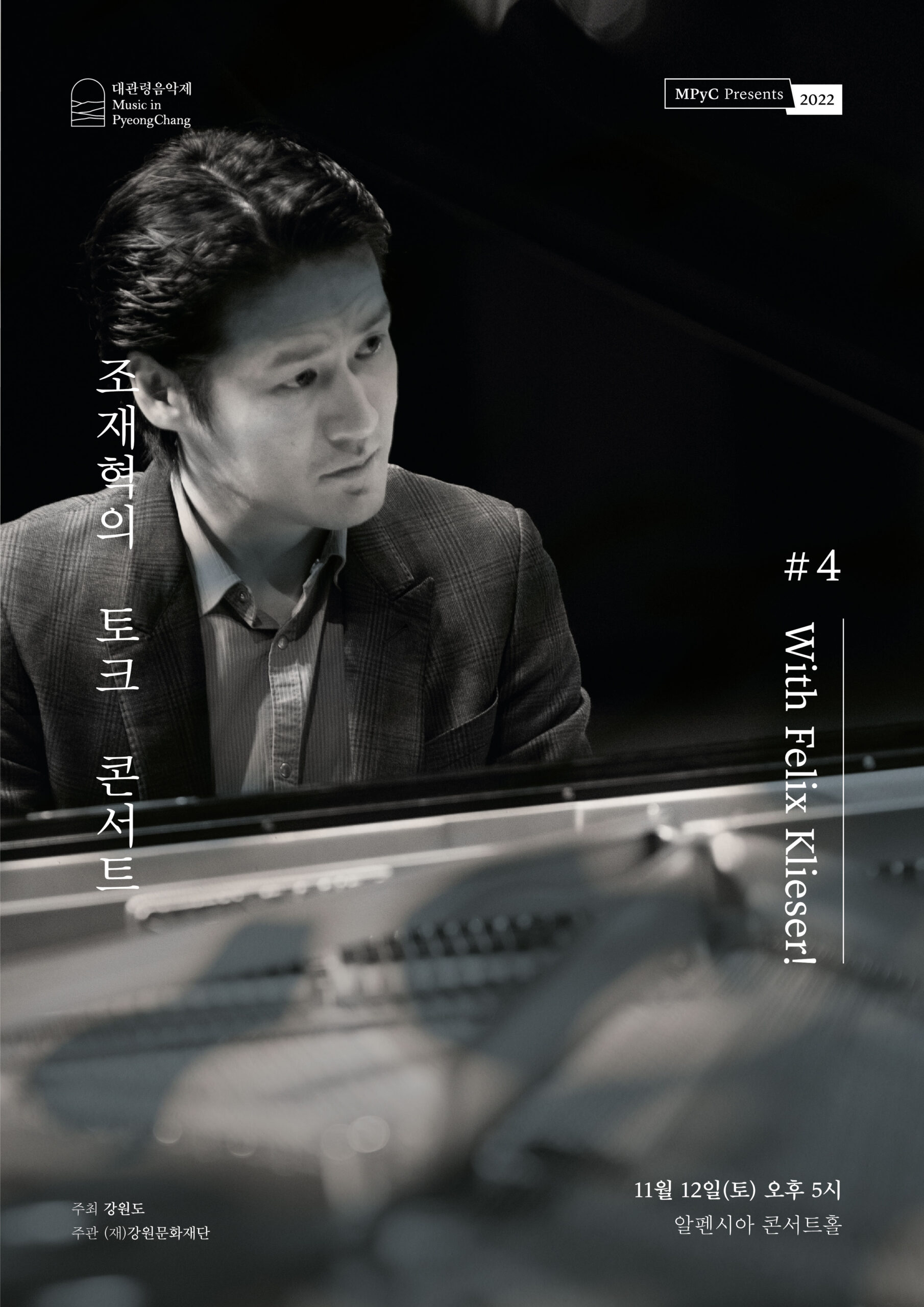 - 대관령음악제 연중기획시리즈 [MPyC Presents 2022] 11월 2회 공연 진행, 12월까지 계속- <조재혁의 토크 콘서트 4> 11월 12일(토) 오후 5시 피아니스트 조재혁과 호르니스트 펠릭스 클리저 듀오 리사이틀- 11월 19일(토) 오후 5시 서울챔버뮤직소사이어티의 현악 4중주 무대