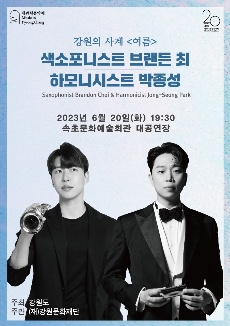 강원의 사계 <여름>에서 ‘색소포니스트 브랜든 최 & 하모니시스트 박종성’의 이색적인 클래식 악기들의 특별한 프로그램을 선보인다.대관령음악제는 지난 4월 올해의 첫 공연으로 강릉에서 선보인 강원의 사계 <봄>에서 세계적인 두 거장인