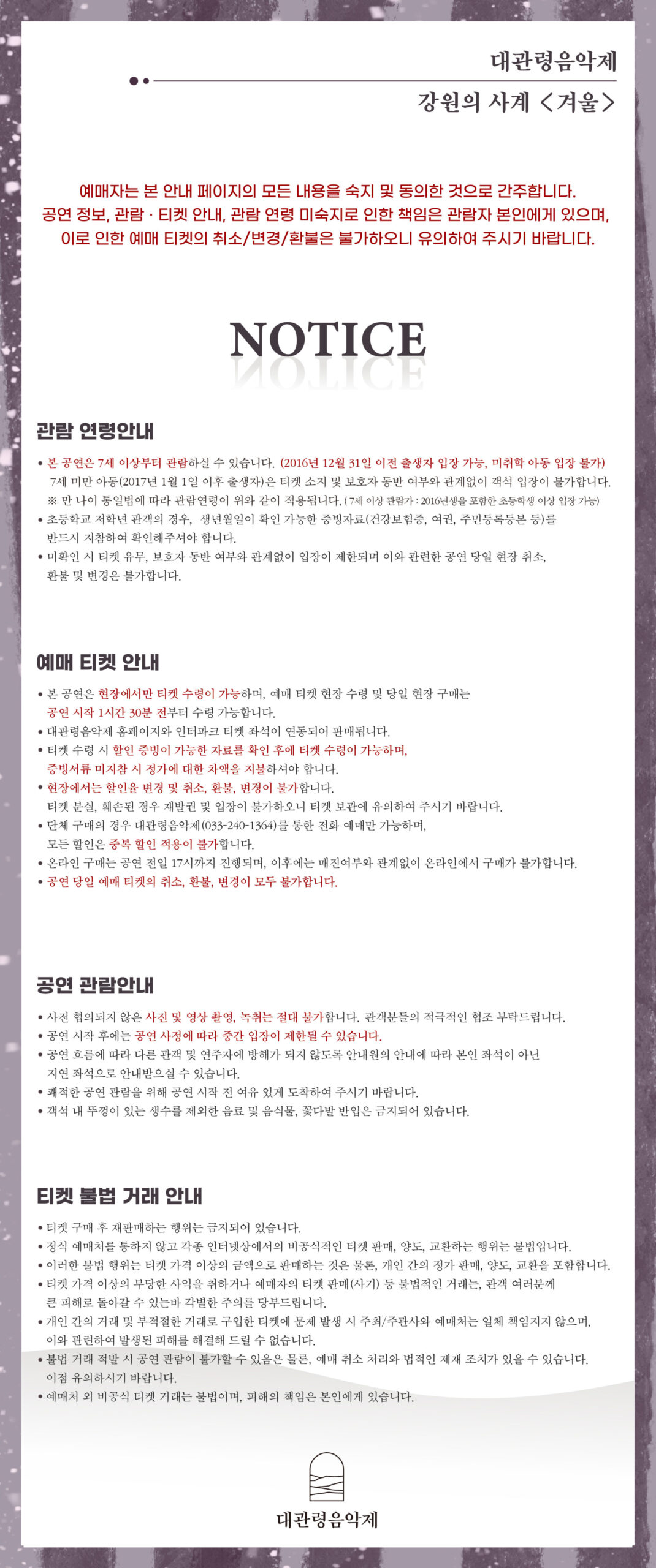 - 티켓공연일: 2023.12.15.(금) 7:30pm 알펜시아 콘서트홀