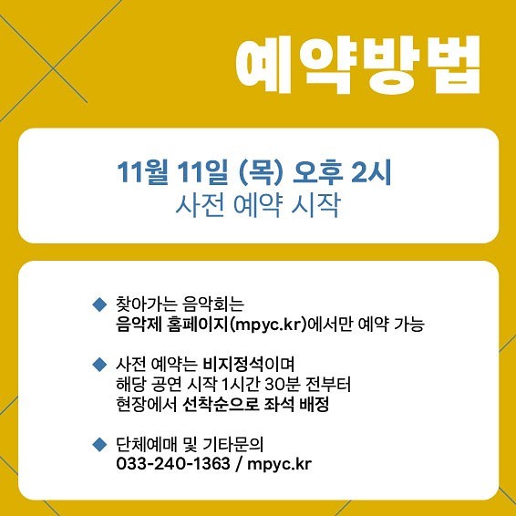 ? ?????? ????11. 11. (목) 오후 2시 : 음악제 홈페이지(www.mpyc.kr)