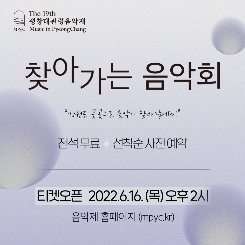 [제19회 평창대관령음악제] <찾아가는 음악회> 티켓 오픈(2022.6.16.(목) 오후 2시)