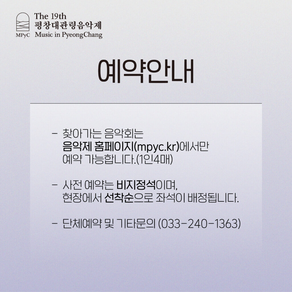 제19회 평창대관령음악제 <찾아가는 음악회>티켓 예약이 내일(16일) 오후 2시부터 시작됩니다!?