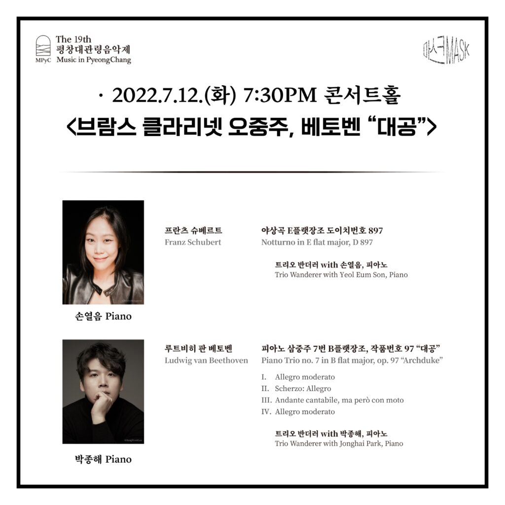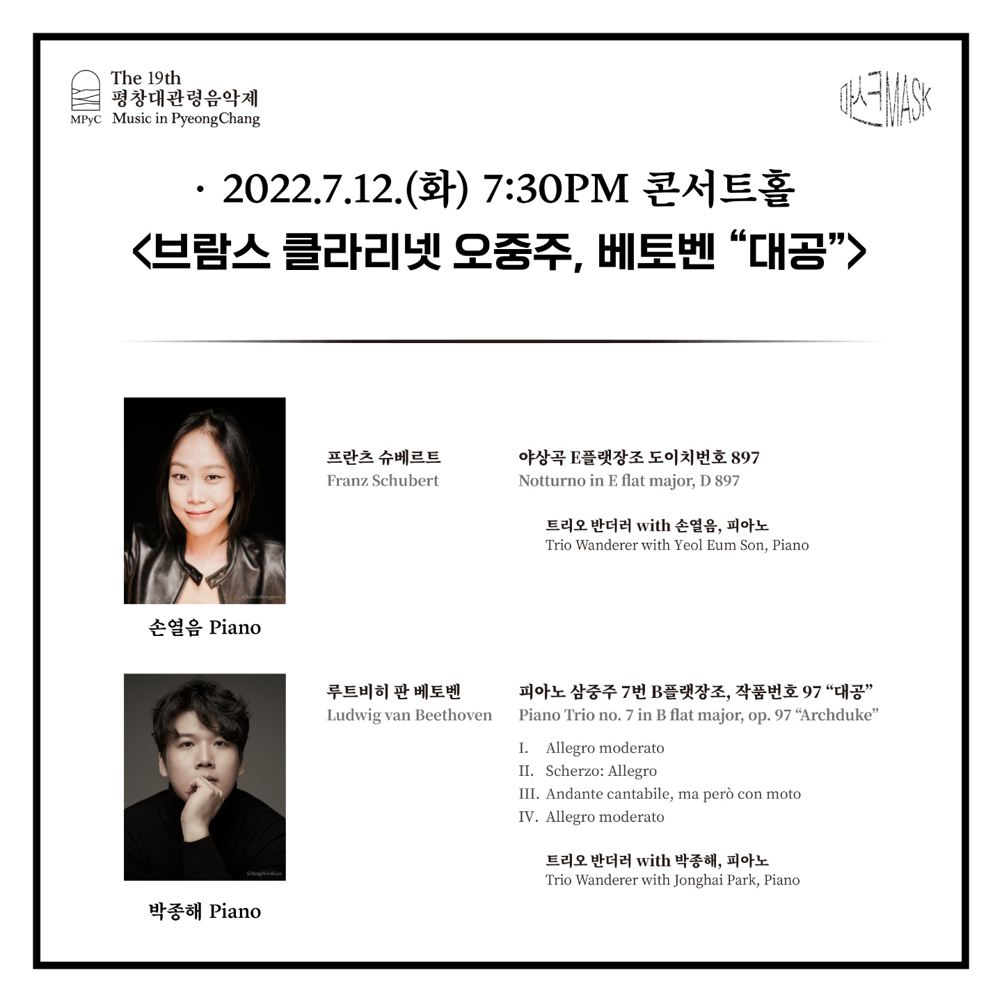 *2022.7.12.(화) 7:30PM 콘서트홀 <브람스 클라리넷 오중주, 베토벤 "대공">