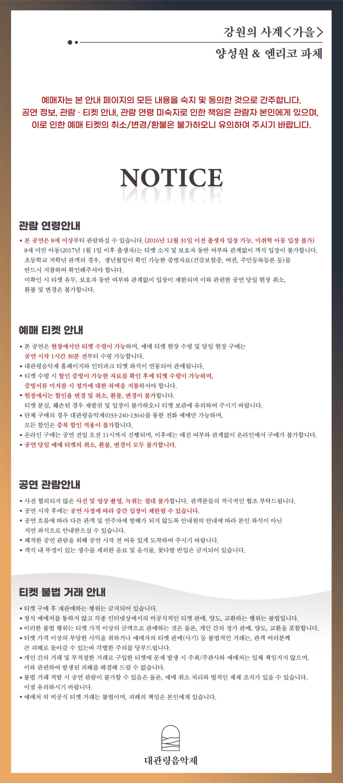 [강원의 사계] 강원의 사계<가을>'양성원&엔리코 파체' 9월 13일 2:00pm 티켓 오픈!