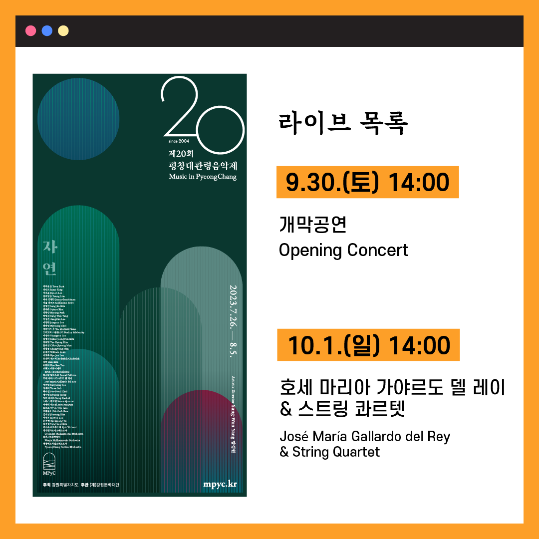 [추석특집] 제20회 평창대관령음악제 공연 라이브 스트리밍 공개 안내(9.30.~10.1.)