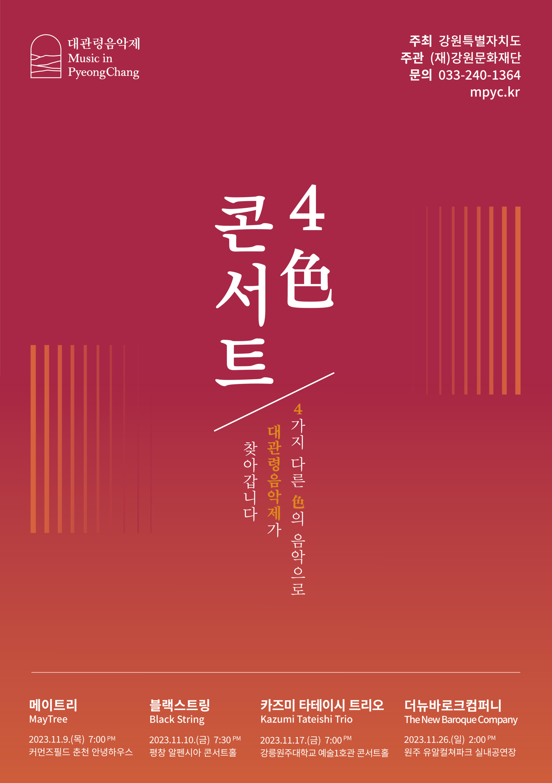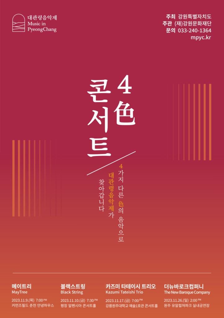대관령음악제의 色다른 공연! 2023년 11월 춘천,평창,강릉,원주에서 4色 콘서트가 열립니다.✌️